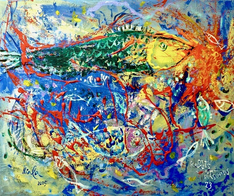 - Technique : Techniques mixtes (acrylique et collage s/toile)