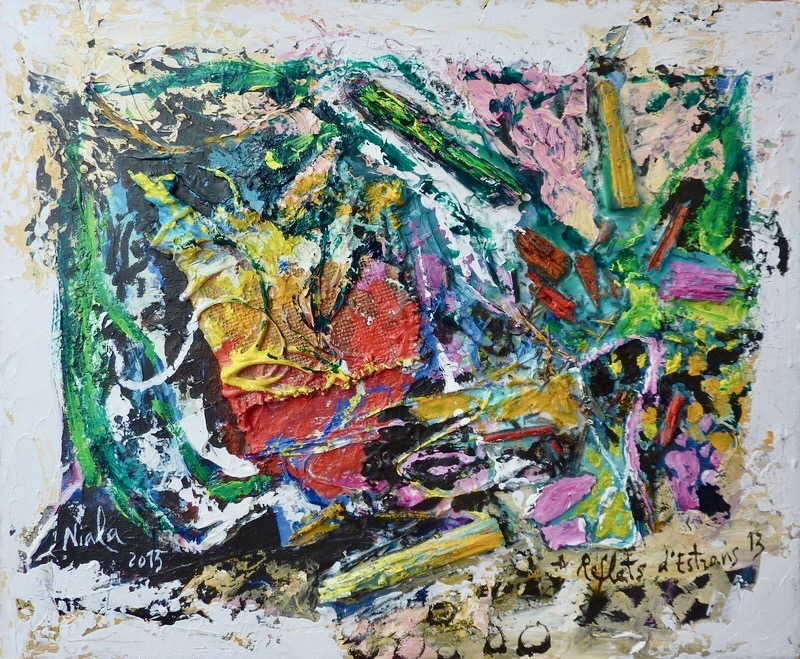 - Technique : Techniques mixtes (acrylique et collage s/toile)